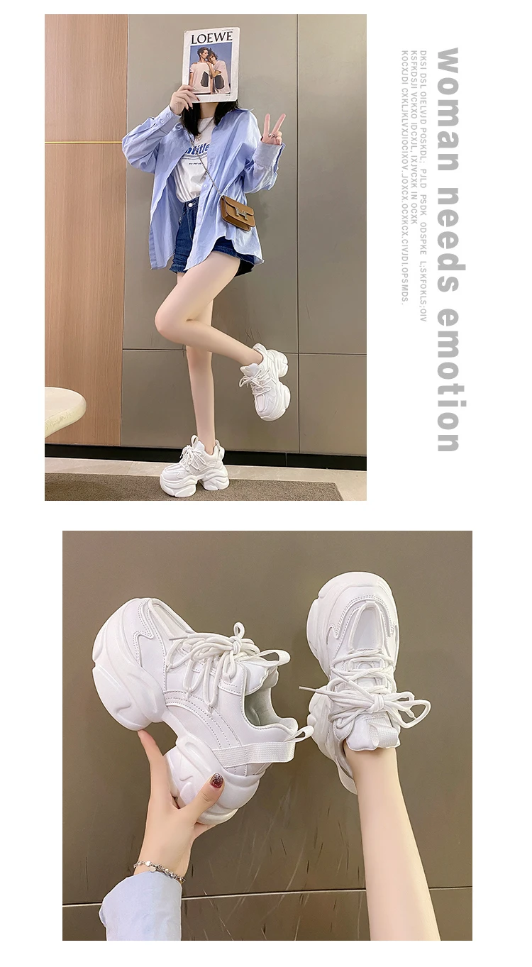 Black Women Chunky Leather Sneakers High Platform Ulzzang Sports Shoes New 2022 Autumn Thick Bottom Women's Wedge Casual Shoes