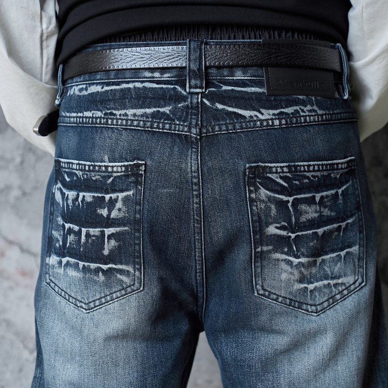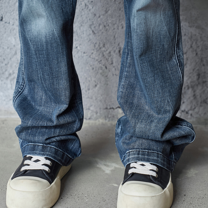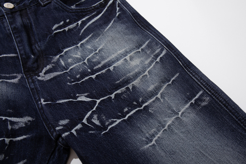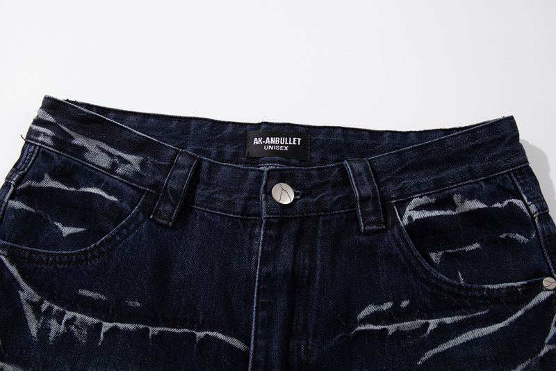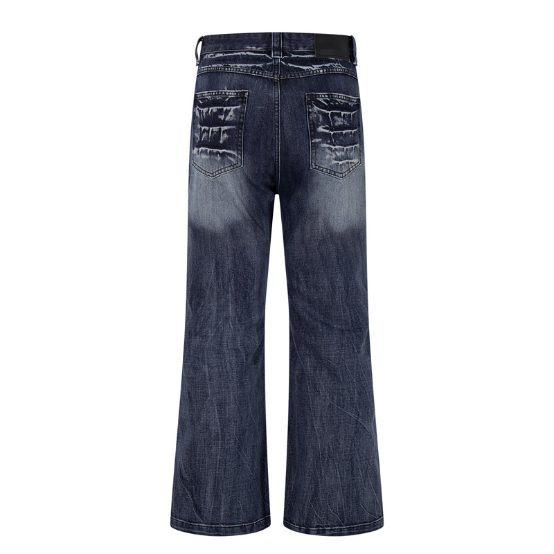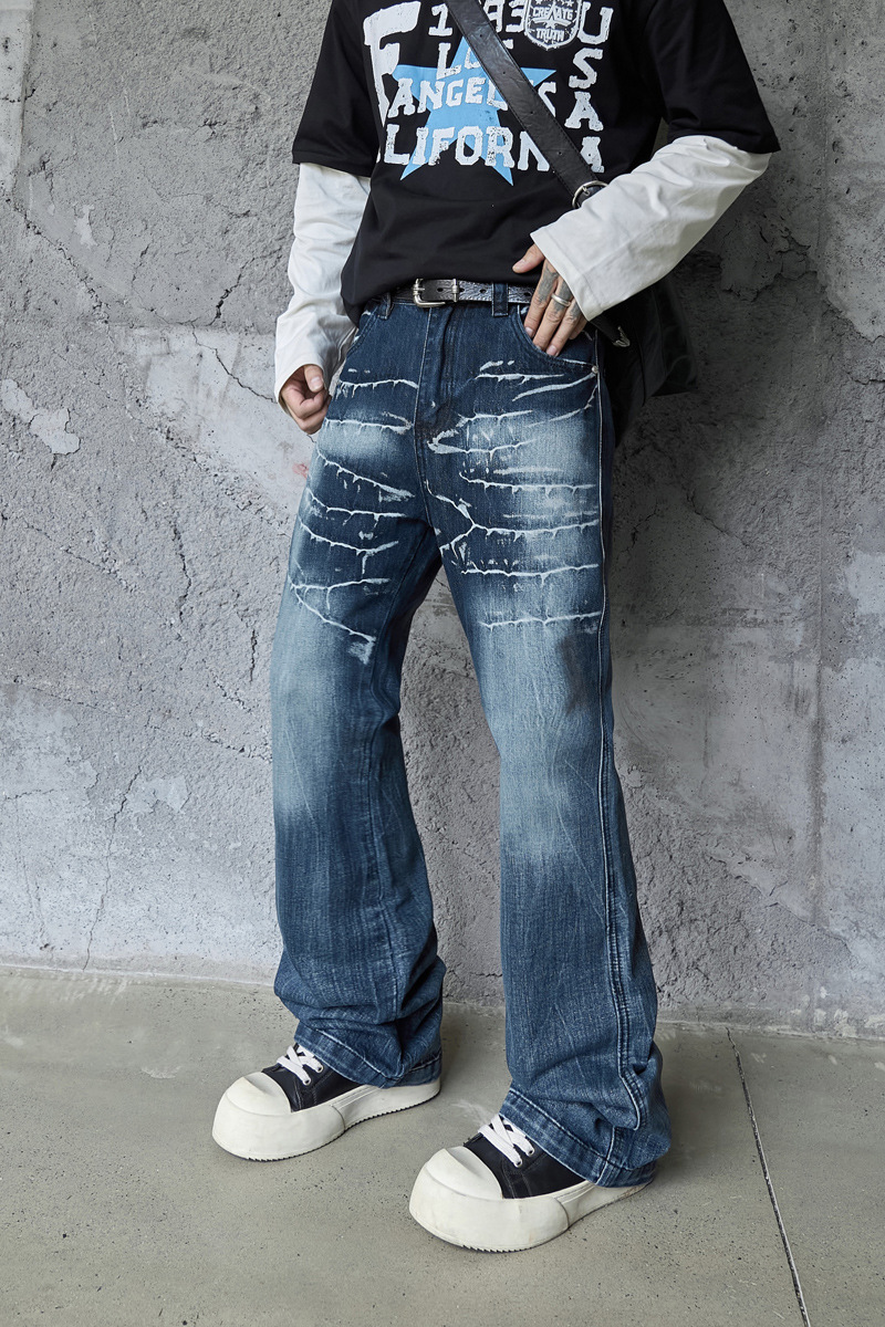 Retro Washed Lightning Pattern Men's Long Pants, INS Autumn Trendy Streetwear, Cool and Versatile Slightly Flared Jeans