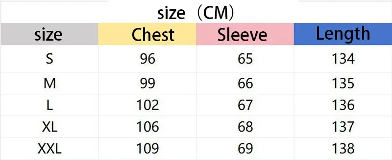 size_info: {"sizeInfoList":[{"length":{"cm":"96","inch":"37.80"},"size":"S","vid":-1},{"length":{"cm":"99","inch":"38.98"},"size":"M","vid":-2},{"length":{"cm":"102","inch":"40.16"},"size":"L","vid":-3},{"length":{"cm":"106","inch":"41.73"},"size":"XL","vid":-4},{"length":{"cm":"109","inch":"42.91"},"size":"XXL","vid":-5}]}