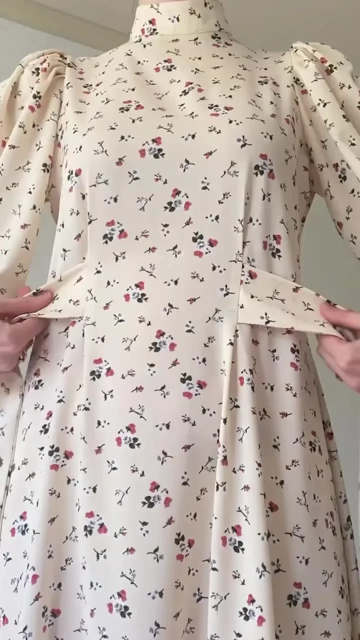 Women's Dress Spring Fashion Loose Lace Up Intellectual Elegance Fragmented Flower Waist Tie Up Temperament Commuter Dress Robe